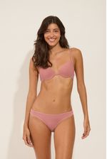 Sutiã em poliamida com aro, bojo, alças forradas, costas com numeração internacional, isto é, uma combinação de número e letra. Os números correspondem ao tamanho das costas e a letra ao volume do seio.