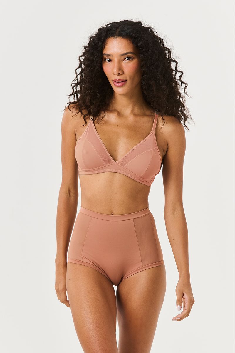 A Calcinha Hotpants Tech Pro/Tule Mocca Mousse é uma peça que combina conforto, tecnologia e um visual moderno em uma modelagem de cintura mais alta e elegante.