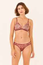 Calcinha de cobertura média em tule delicado com estampa Camaleão. Modelagem confortável que se ajusta ao corpo, proporcionando liberdade de movimento e toque suave sobre a pele. Acabamento delicado e sofisticado, perfeita para o dia a dia ou para complementar os sutiãs da coleção com elegância.