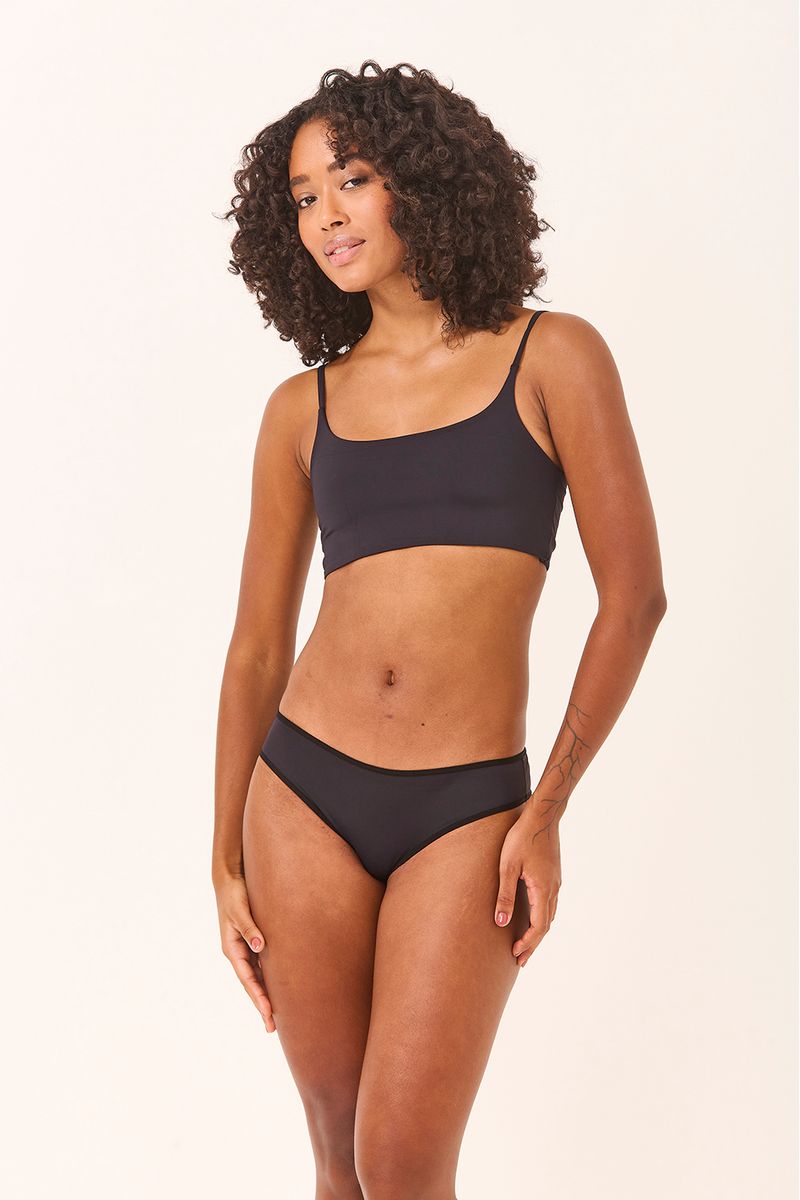 Calcinha com lateral média e elástico na cintura | Cor do aviamento: Preto | Tecido: Poliamida (90% poliamida, 10% elastano) e forro: 100% algodão