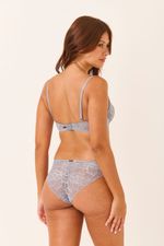 Calcinha média em renda prata Embaúba, com desenho delicado que desenha a pele com charme e textura. A cobertura equilibrada oferece segurança sem perder leveza, enquanto o acabamento macio garante conforto para o dia inteiro. Uma peça que ilumina o corpo com sutileza e elegância — perfeita para quem gosta de lingerie com bossa e presença.