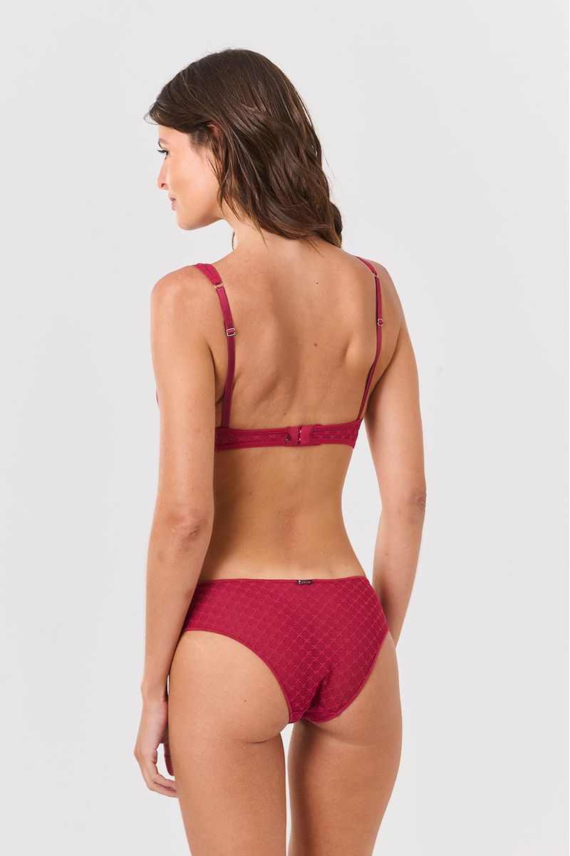 A modelagem média oferece equilíbrio entre conforto e elegância, com laterais e cobertura do bumbum na medida certa, garantindo um caimento seguro e agradável ao corpo. É uma ótima opção para quem prefere peças mais confortáveis, mas ainda delicadas.