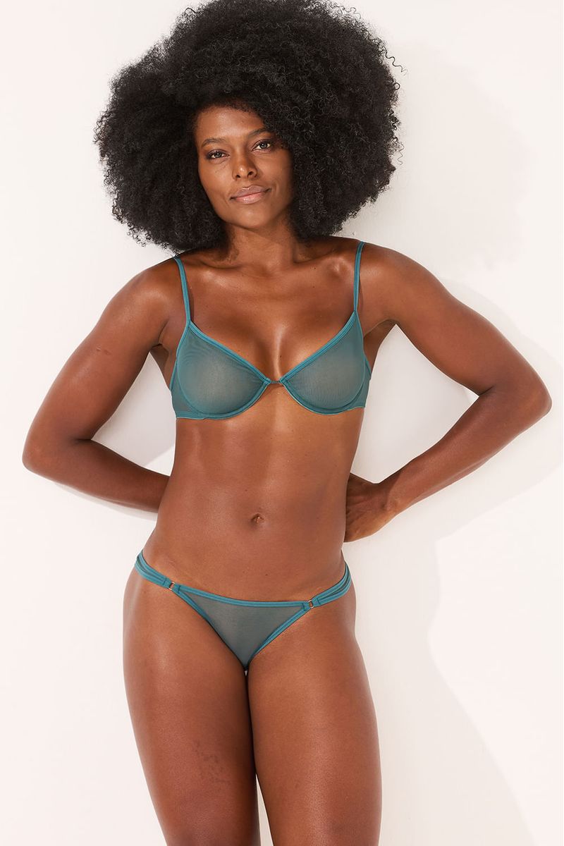 Calcinha Tanga Bumbum Franzido Tule Azul Galáxia