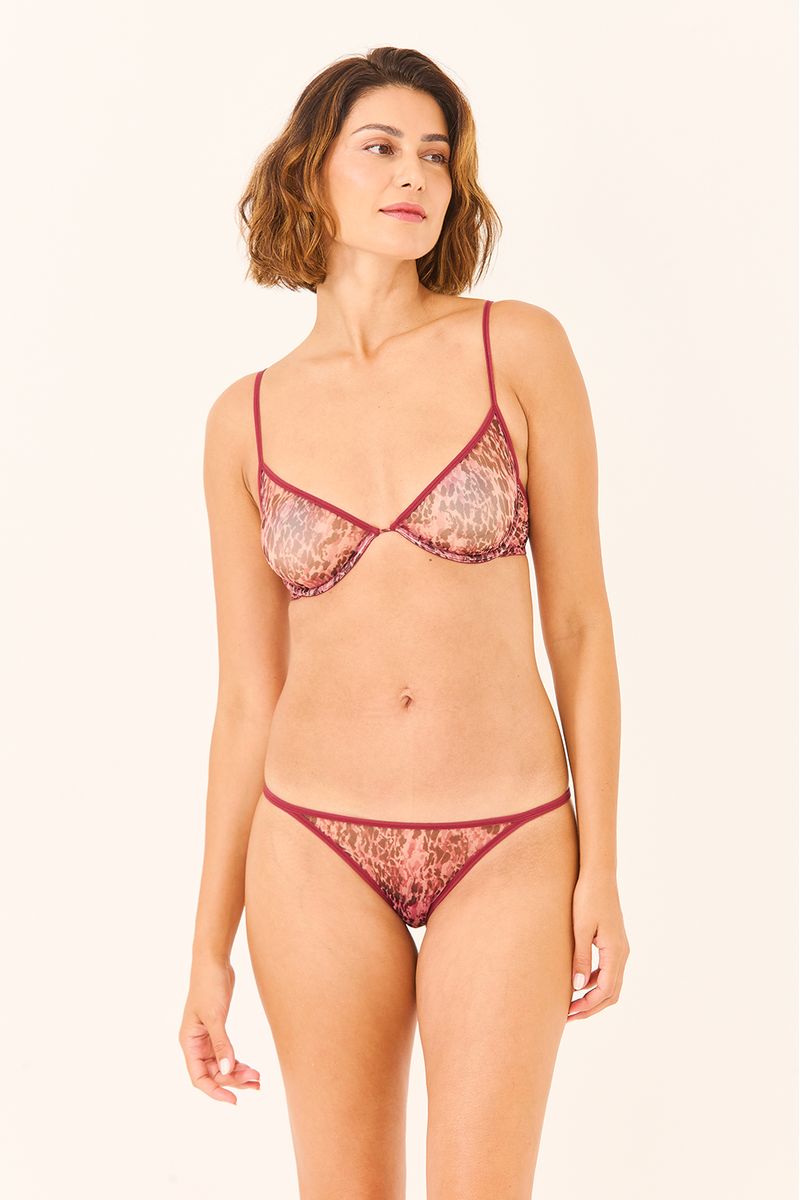 Calcinha tanga em tule delicado com estampa Camaleão. Modelagem que valoriza a silhueta e garante conforto, com toque suave sobre a pele. Acabamento refinado que combina elegância e sensualidade, perfeita para usar sozinha ou em conjunto com sutiãs da mesma coleção.