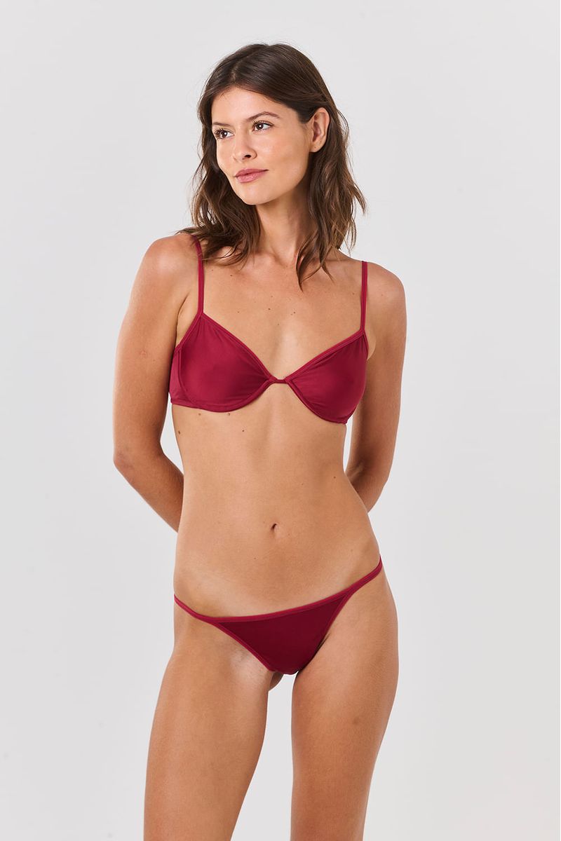 No tom carmim, traz um visual moderno e feminino. Ideal para usar com roupas mais ajustadas, como vestidos, saias e calças de tecidos leves ou finos. Para maior discrição, funciona melhor sob peças em cores médias ou escuras. É perfeita tanto para o dia a dia quanto para momentos em que você quer se sentir confortável e confiante.