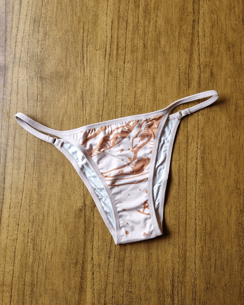 Calcinha modelo tanga em malha de viscose com estampa Cordel Rosa — delicada, macia e cheia de charme. Um clássico confortável para o dia a dia, com a leveza da Verve.