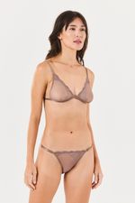 A Calcinha Tanga Renda Delicada Castanho combina leveza, feminilidade e um design sofisticado. Confeccionada em renda delicada com tule macio, cria um efeito sutil sobre a pele e valoriza o corpo com elegância.