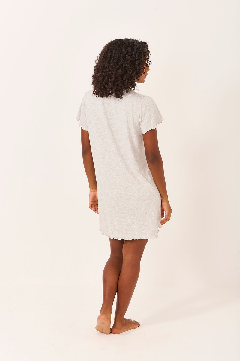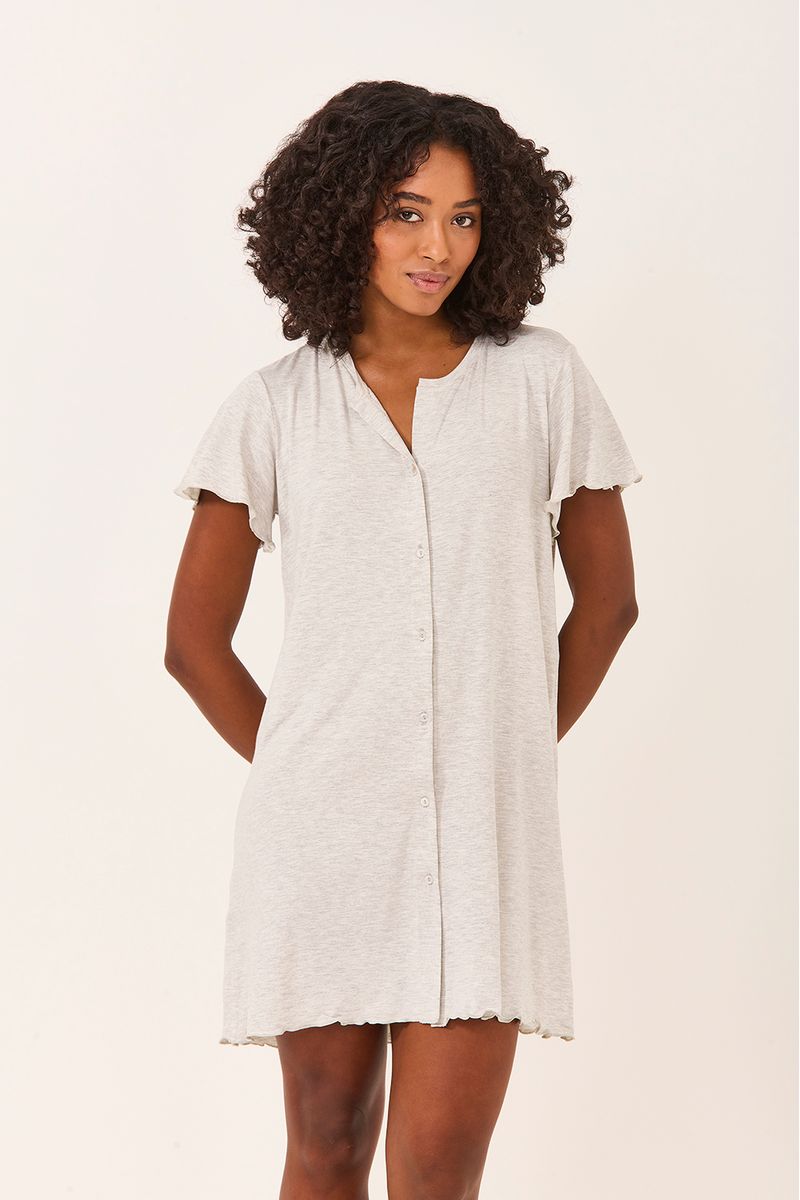 Camisola Botões Mescla Claro em malha macia e leve, com modelagem reta e abertura frontal com botões funcionais. O decote em V e as mangas curtas garantem conforto e praticidade, enquanto o tom mescla claro traz um visual neutro e acolhedor — perfeita para noites tranquilas e manhãs preguiçosas.