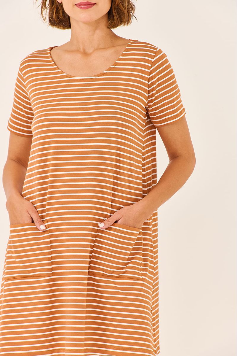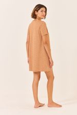 Camisola leve e confortável em malha macia, com listras dourado e off-white. Modelagem soltinha que envolve o corpo com suavidade, proporcionando liberdade de movimento e sensação de bem-estar. Peça versátil, perfeita para noites de descanso ou momentos de relaxamento com estilo.