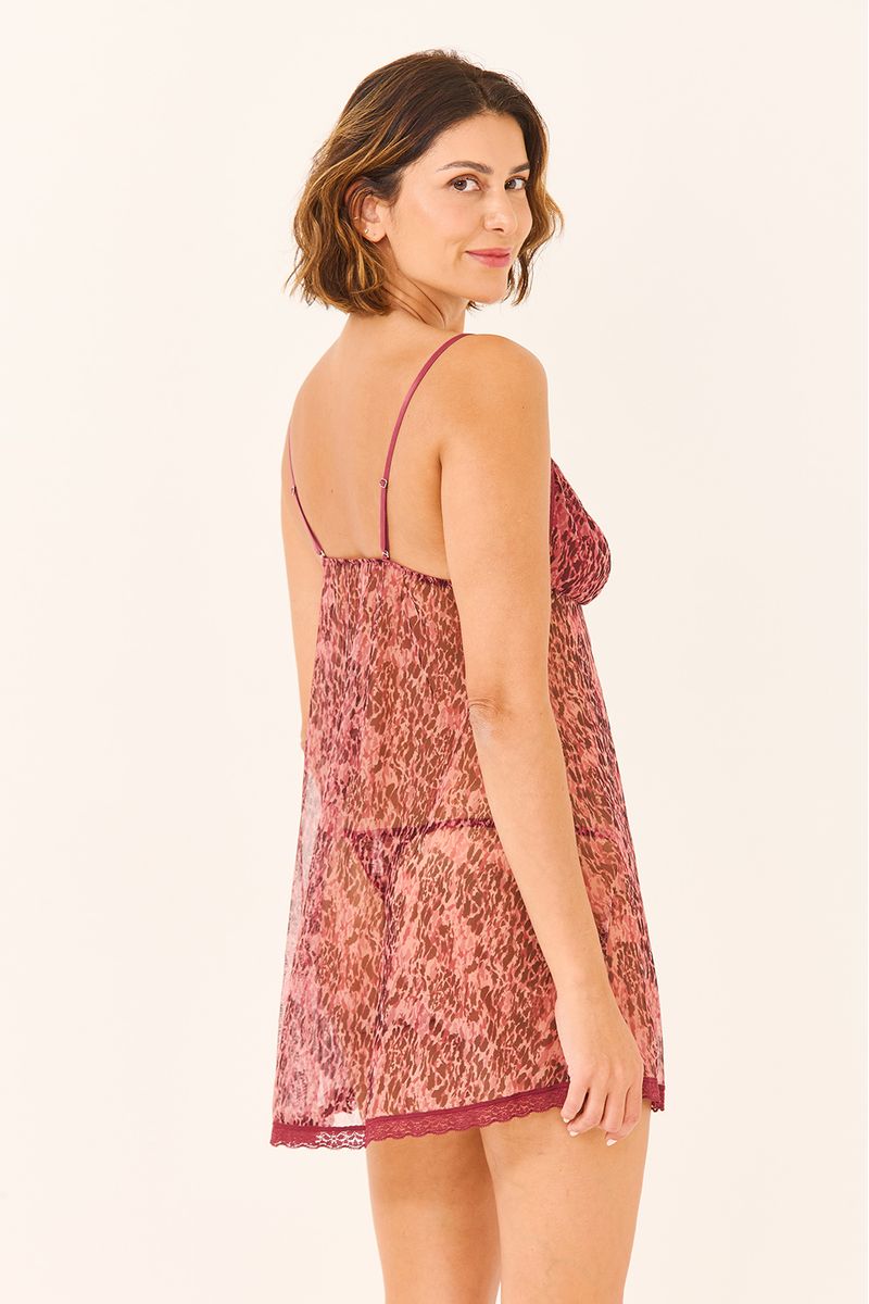 Camisola delicada em tule transparente com detalhes em renda, na estampa Camaleão. Modelagem leve e fluida que envolve o corpo com conforto e sofisticação. Alças finas ajustáveis e acabamento refinado, perfeita para momentos de autocuidado com um toque sensual e elegante.