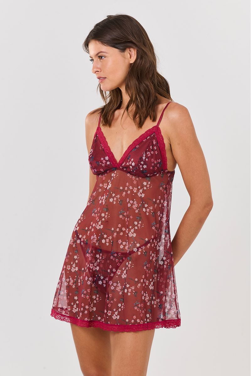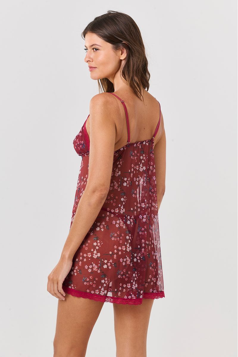 A estampa E. Cerejeira, com pequenos florais sobre o fundo carmim, traz um visual romântico e envolvente. Ideal para ocasiões especiais, como momentos a dois ou para quando você deseja se sentir mais confiante e bonita, mas também perfeita para noites em que o autocuidado vem em primeiro lugar. Uma peça pensada para transformar o descanso em um ritual de prazer e bem-estar.