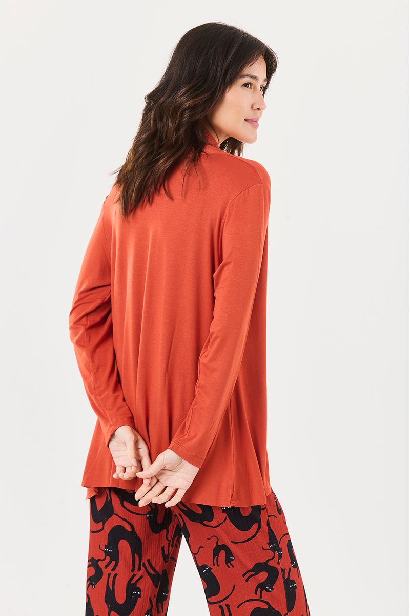 Confeccionado em tecido macio e confortável, possui toque suave na pele e mangas longas que oferecem aconchego na medida certa. A frente aberta alonga a silhueta e permite diferentes formas de uso, funcionando muito bem sobre regatas, tshirts, vestidos ou pijamas.