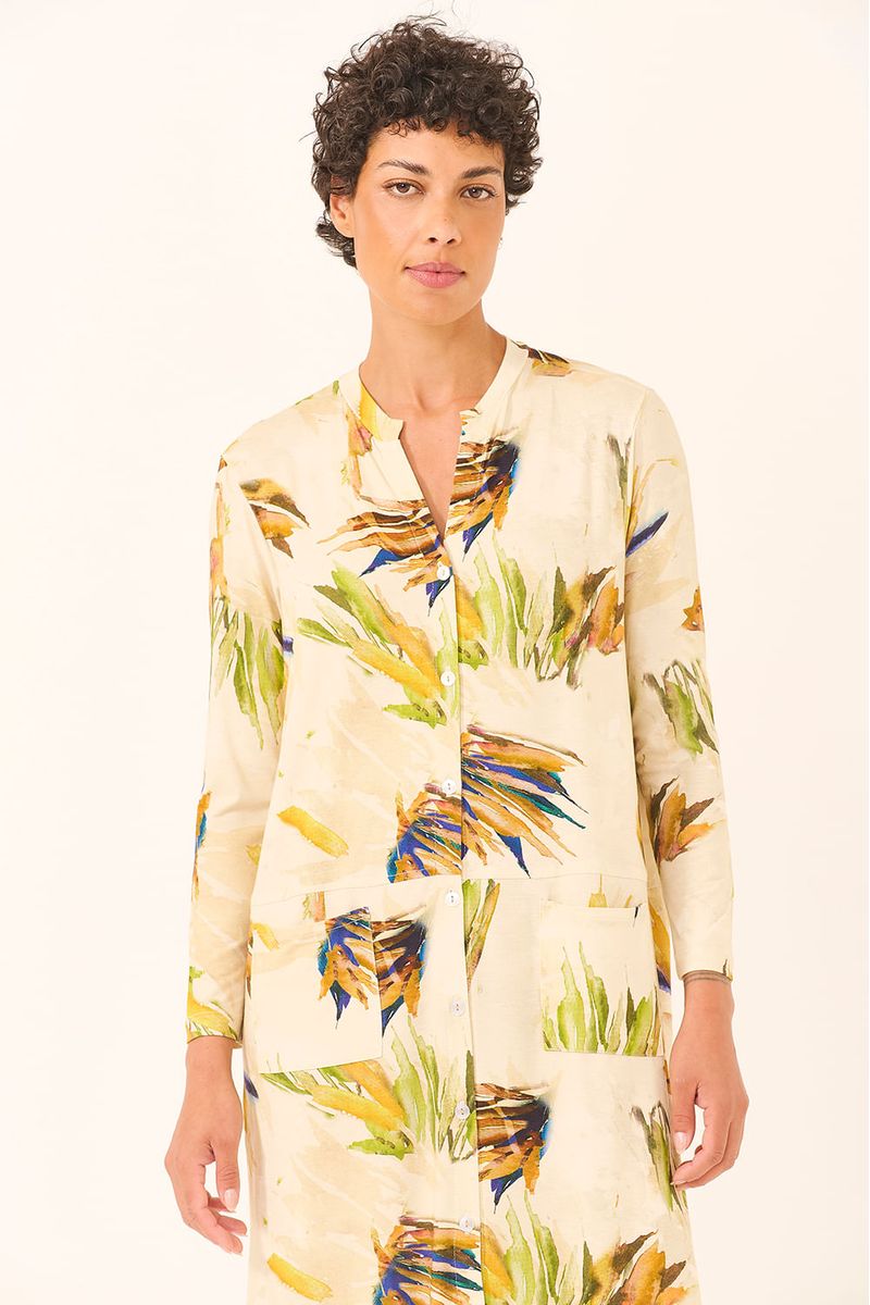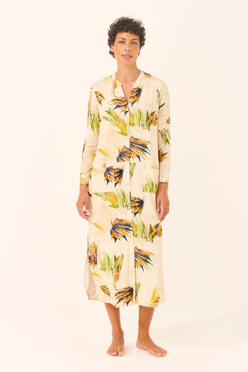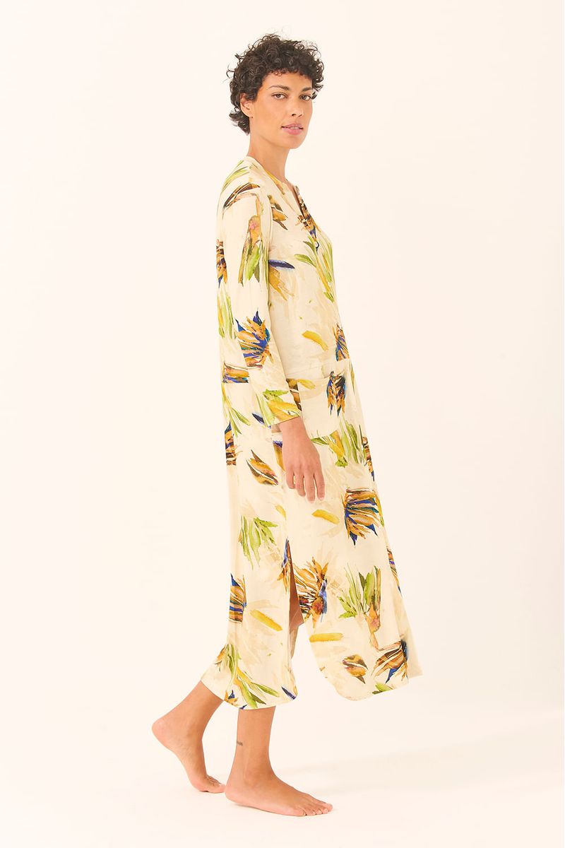 A chemise longa Estrelícia combina leveza e sofisticação em uma peça única. Confeccionada em tecido fluido, com estampa inspirada na flor estrelícia, traz frescor e elegância para os momentos de descanso ou para usar solta no dia a dia. O corte alongado valoriza o caimento e garante conforto com estilo natural.