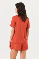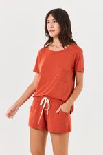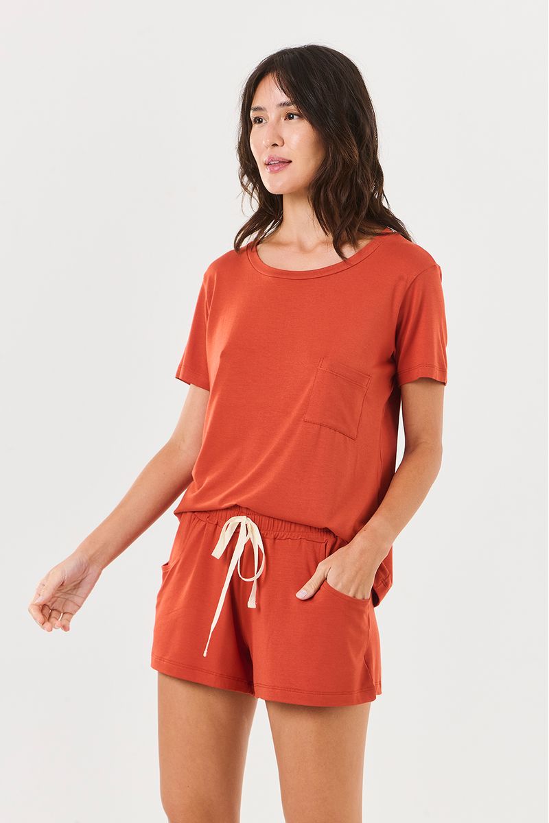 A blusa possui caimento solto e agradável ao corpo, enquanto o short conta com bolsos funcionais que trazem praticidade e um charme extra à peça. O tecido macio garante toque suave na pele, tornando o conjunto perfeito para momentos de descanso ou lazer.