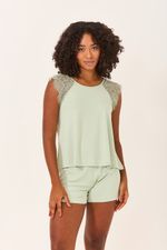 Conjunto Curto Raglan Blur/Renda Verde Acqua, em malha suave e leve que proporciona toque fresco e confortável à pele. O top com recortes raglan ganha delicadeza com renda nos ombros, enquanto o short de cintura elástica traz praticidade e liberdade de movimento. O tom verde acqua acrescenta leveza e serenidade ao visual — perfeito para noites de descanso com charme e conforto.