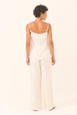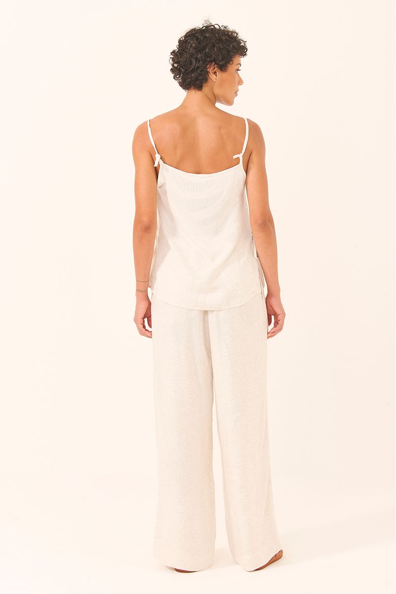 Um conjunto leve, elegante e versátil para acompanhar você em qualquer momento do dia. A calça pantalona em jacquard cru traz caimento fluido e toque sofisticado, enquanto a blusa de alcinha combina delicadeza e conforto na medida certa. O jacquard adiciona textura sutil e charmosa, criando um look refinado sem esforço. Perfeito para usar sozinho ou combinar com acessórios que destacam ainda mais sua personalidade.