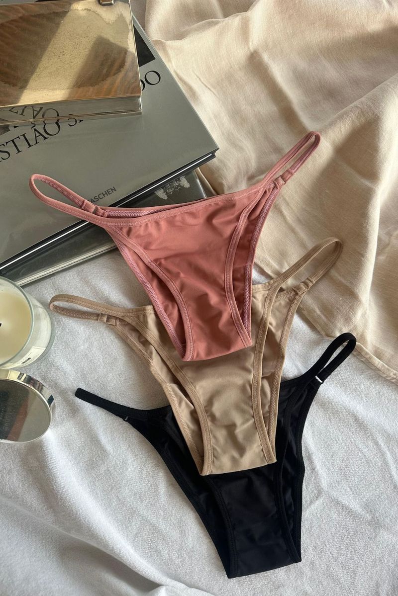 O kit vem com três calcinhas modelo tanga em poliamida macia e leve, que se ajusta ao corpo com delicadeza. Versáteis e invisíveis sob a roupa, nas cores preto, nude e rosa, são ideais para o dia a dia sem abrir mão da elegância e do conforto.