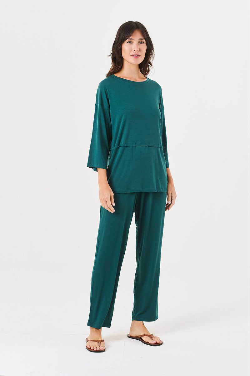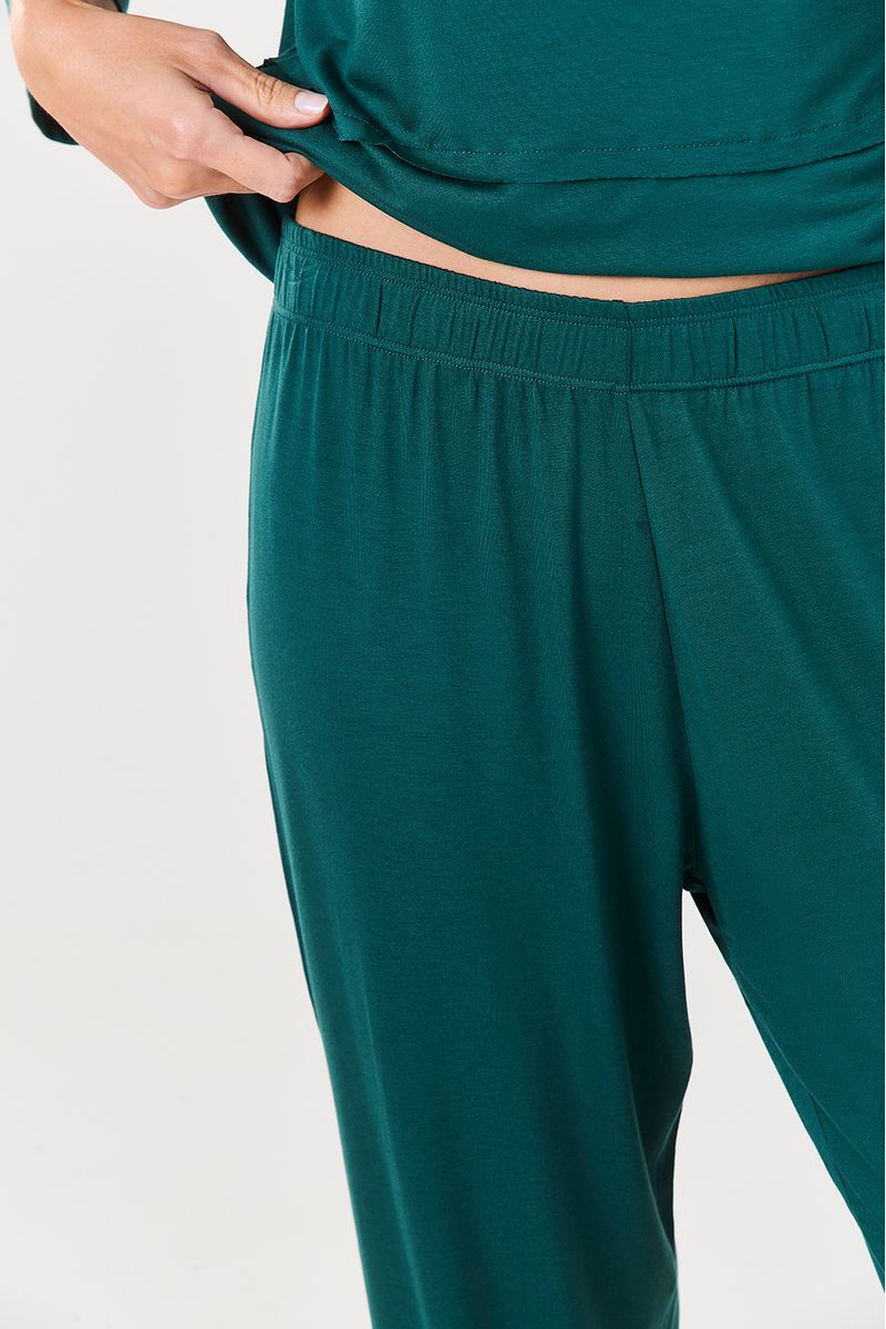 Na cor esmeralda, sofisticada e marcante, o conjunto traz frescor e personalidade para os momentos de descanso. Ideal para noites tranquilas, finais de semana em casa ou até para aquele momento de autocuidado com conforto e estilo.