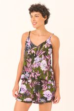 Com modelagem leve e delicada, ele traz estampa floral exuberante em fundo verde, alcinhas finas reguláveis e caimento soltinho que garante frescor e conforto. Um look perfeito para noites de verão ou para relaxar em casa com charme e leveza.