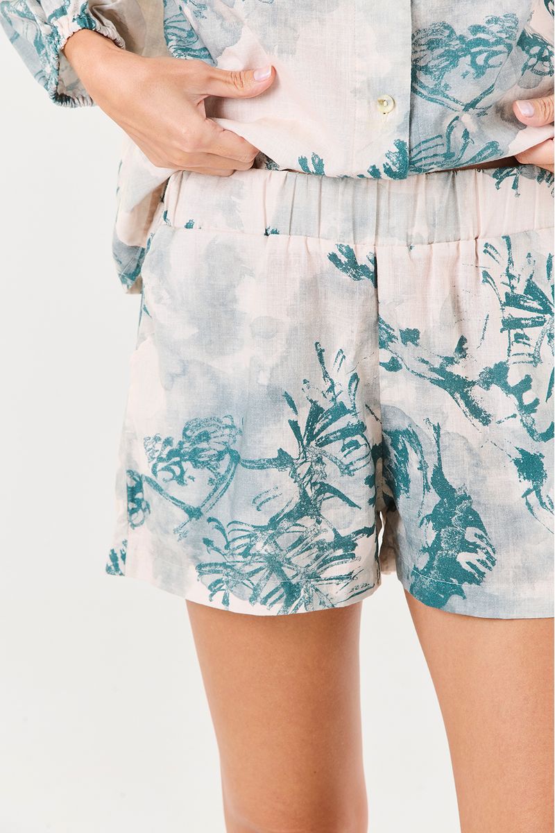 A estampa bonsai traz um visual orgânico e elegante, adicionando um ar contemporâneo e delicado à peça. Versátil e confortável, é ideal para noites mais quentes ou momentos relax em casa.
