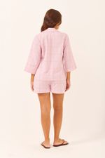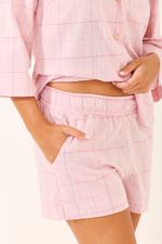 O Pijama Curto Running combina a delicadeza do rosa com a modernidade do xadrez Mescla, perfeito para o seu conforto. O tecido com textura sutil é leve e fresco. A camisa de manga 3/4 e o short com modelagem running (mais soltinha) garantem um caimento impecável e total liberdade de movimento para relaxar com estilo.