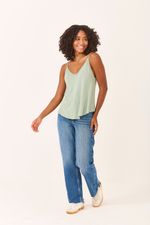 Leveza e frescor definem a Regata Alça Fina no elegante tom Verde Orvalho. Confeccionada em malha macia, possui um caimento fluido e alças delicadas. É uma peça curinga essencial no seu guarda-roupa, perfeita para usar em casa ou criar um look casual e confortável.