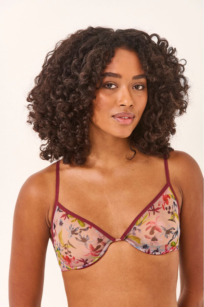 Estrutura com poesia floral. O Sutiã com Aro Orquidário em Tule oferece sustentação suave sem abrir mão da leveza, enquanto a estampa floral translúcida desenha a pele com delicadeza. O aro realça naturalmente o busto, garantindo segurança e conforto no dia a dia. Uma peça que une força e suavidade — feminina, fresca e cheia de bossa.