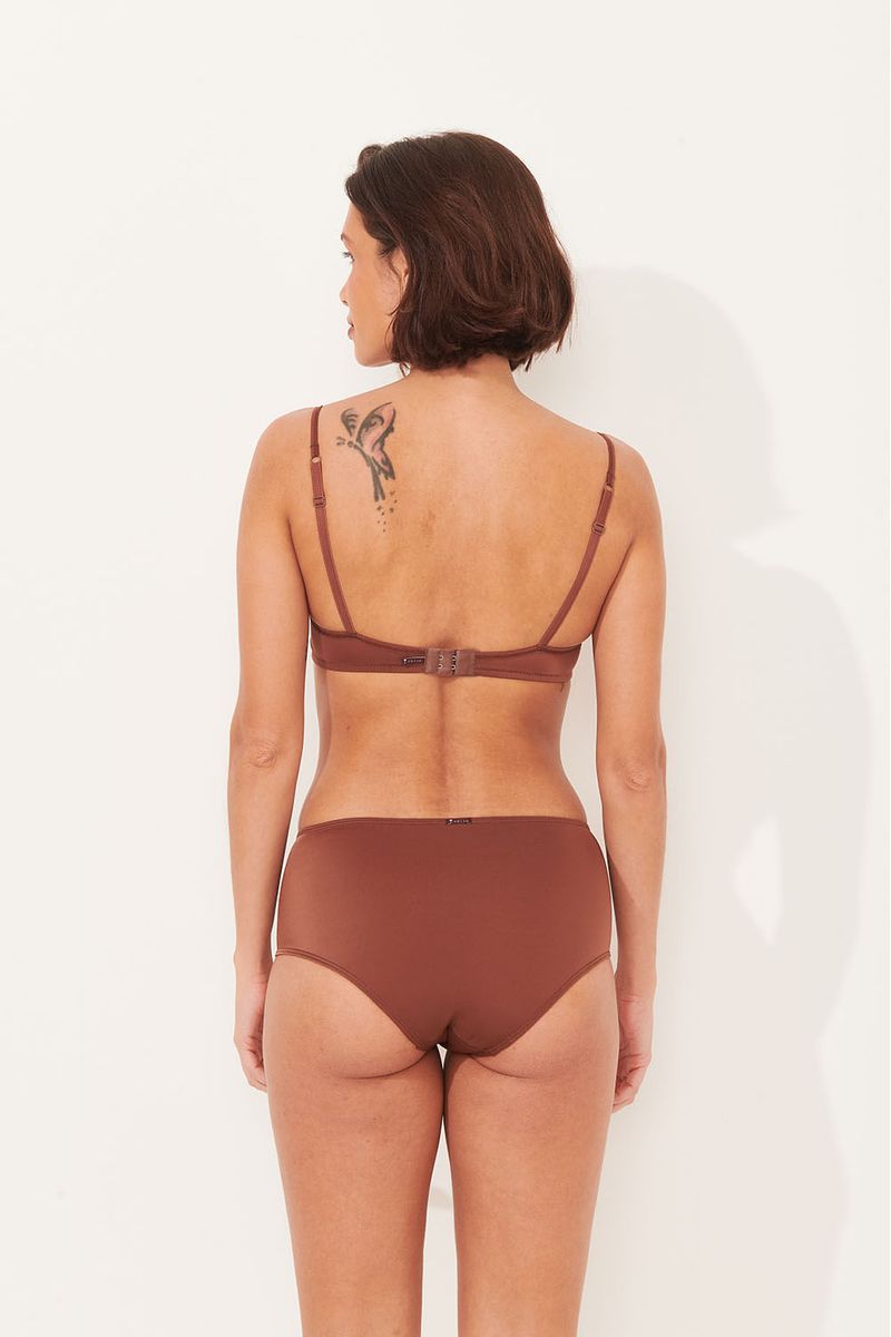 Sua modelagem com aro proporciona excelente sustentação, ajudando a modelar e levantar os seios de forma natural. A cor terra traz uma tonalidade sofisticada e discreta, que pode ser facilmente combinada com outras peças do seu guarda-roupa de lingerie.