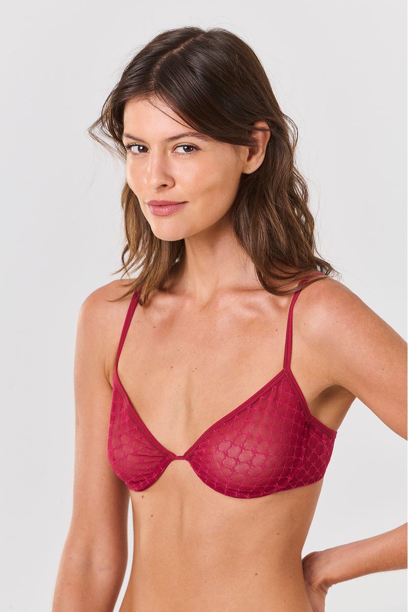 Sutiã com aro confeccionado em tule leve e macio, que oferece sustentação com conforto e um toque delicado sobre a pele. O tule com desenho de laços traz feminilidade e sofisticação na medida certa, com transparência sutil que valoriza a peça sem perder a leveza.