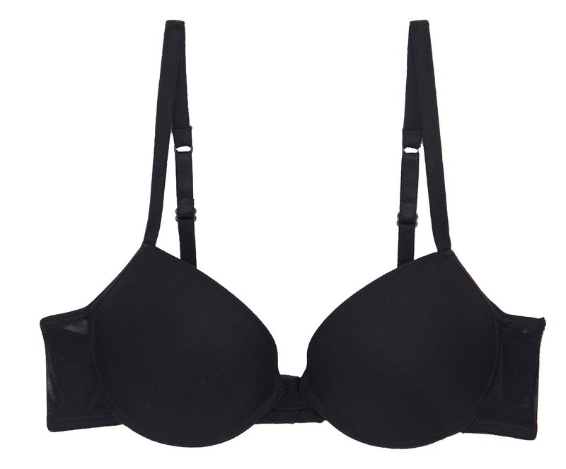 Sutiã em tule preto com aro e bojo estruturado. Não aumenta o tamanho dos seios e valoriza o decote.