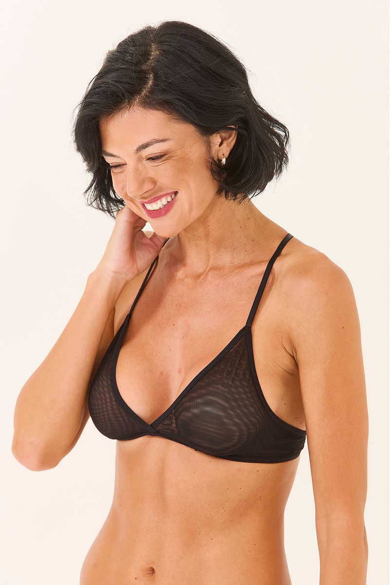 Minimalista e cheio de personalidade, o sutiã triângulo top fio em tule preto tem recorte nadador nas costas e transparência sutil. Sem bojo, valoriza o colo com leveza, enquanto o design moderno garante liberdade de movimento. Um essencial versátil para quem busca conforto com estilo.