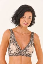 Elegante e moderno, o sutiã triângulo longo em renda bicolor une o contraste sofisticado do nude com o preto. A modelagem estendida oferece mais cobertura, enquanto a renda delicada e o tule transparente valorizam o corpo com leveza. Sem bojo, é perfeito para quem busca conforto e estilo com um toque de ousadia.