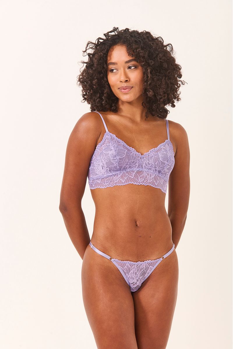 Com design delicado e moderno, o sutiã triângulo Imperatriz une a transparência do tule à renda floral em tom lilás suave. Sem aro e sem bojo, oferece leveza e liberdade com um caimento natural e romântico — perfeito para os dias em que o conforto é o que mais inspira.
