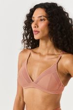 O Sutiã Triângulo Tech Pro/Tule Mocca Mousse é uma peça que une tecnologia, leveza e conforto em um design minimalista e moderno.