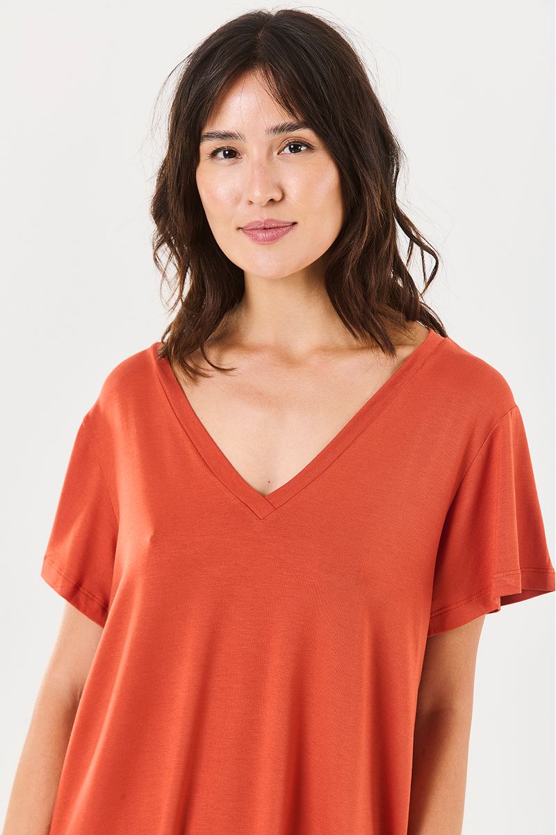 O decote em V valoriza o colo e alonga a silhueta, trazendo leveza e feminilidade à composição. Confeccionada em tecido macio e agradável ao toque, proporciona bem-estar e praticidade para diferentes ocasiões.