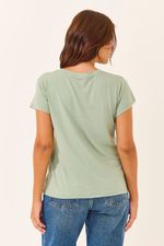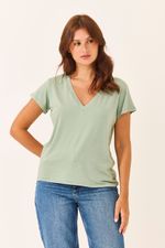 A T-shirt Gola V na cor Verde Orvalho é a peça básica e essencial para o seu conforto. Em malha macia com caimento perfeito, a gola V valoriza o colo de forma discreta. É ideal para compor looks casuais e relaxados, mantendo a elegância e a leveza.